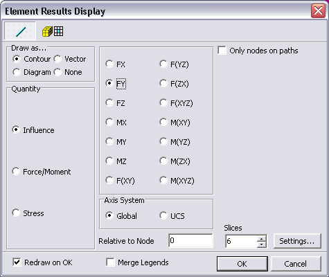 Se interessa la sola linea di influenza effettiva (cioè quella collegata all’effettivo percorso del carico) basta settare l’opzione Only nodes on paths.
