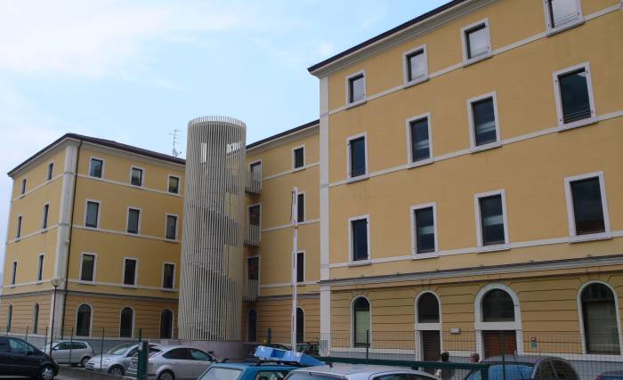 L’edificio è una ex caserma di costruzione austro – ungarica realizzata con muratura portante in pietra, solai ad avvolto su una parte del piano rialzato, in legno ed a volterrane per gli altri piani e tetto a struttura portante in legno con copertura in tegole marsigliesi.