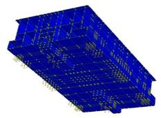 La tavola è costituita da una struttura cellulare in acciaio (vedi Figura 4 e Figura 5) , il primo obbiettivo della modellazione è stato quello di rendere la tavola il più rigida possibile (Frequenza propria ≥60Hz) ma allo stesso tempo molto leggera (peso ≤35ton) al fine di diminuire il più possibile l’effetto del momento ribaltante dovuto al disallineamento tra il punto di applicazione della forza e il centro delle masse.