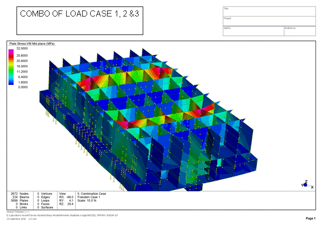 In una seconda fase si sono svolte analisi per verificare il comportamento dei vari elementi di irrigidimento della tavola e delle guide sottoposti a varie casistiche di prova, con strutture di diversa altezza e peso e con i massimi carichi amissibili combinati tra di loro.