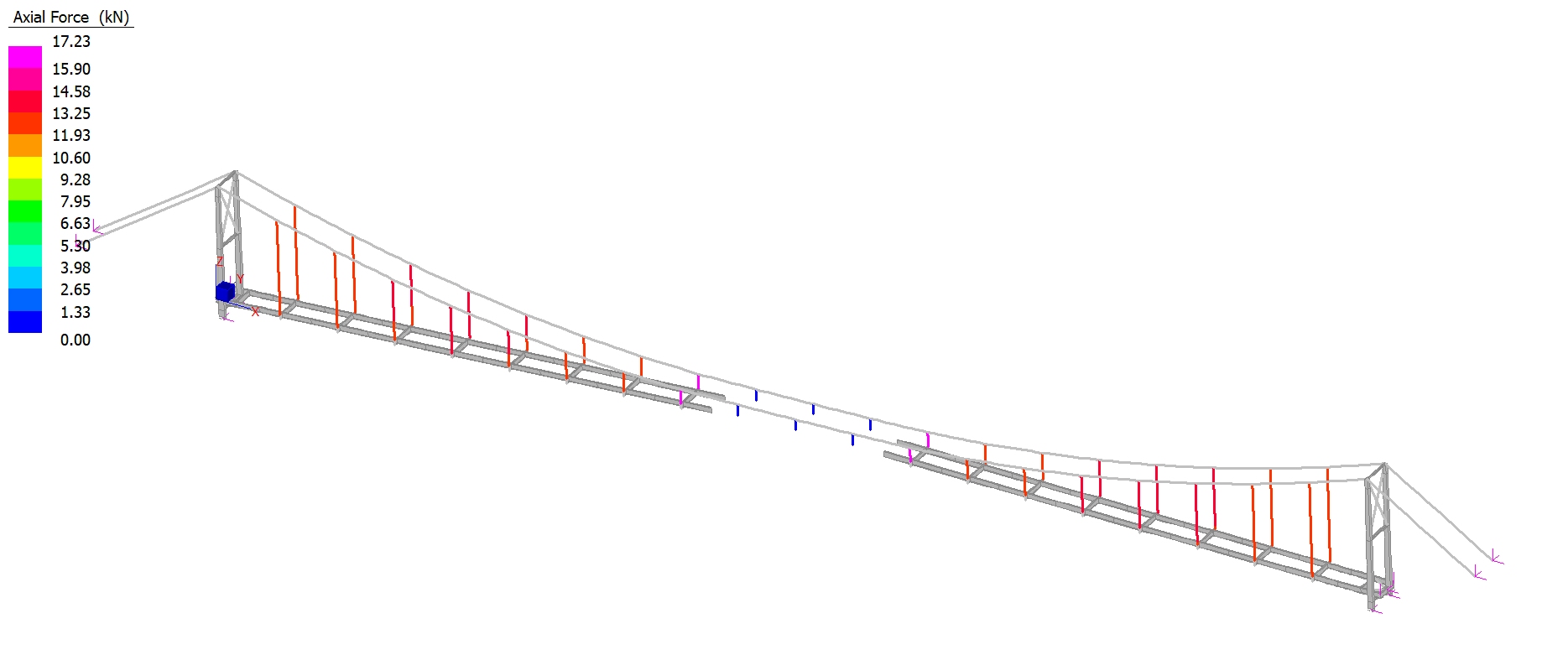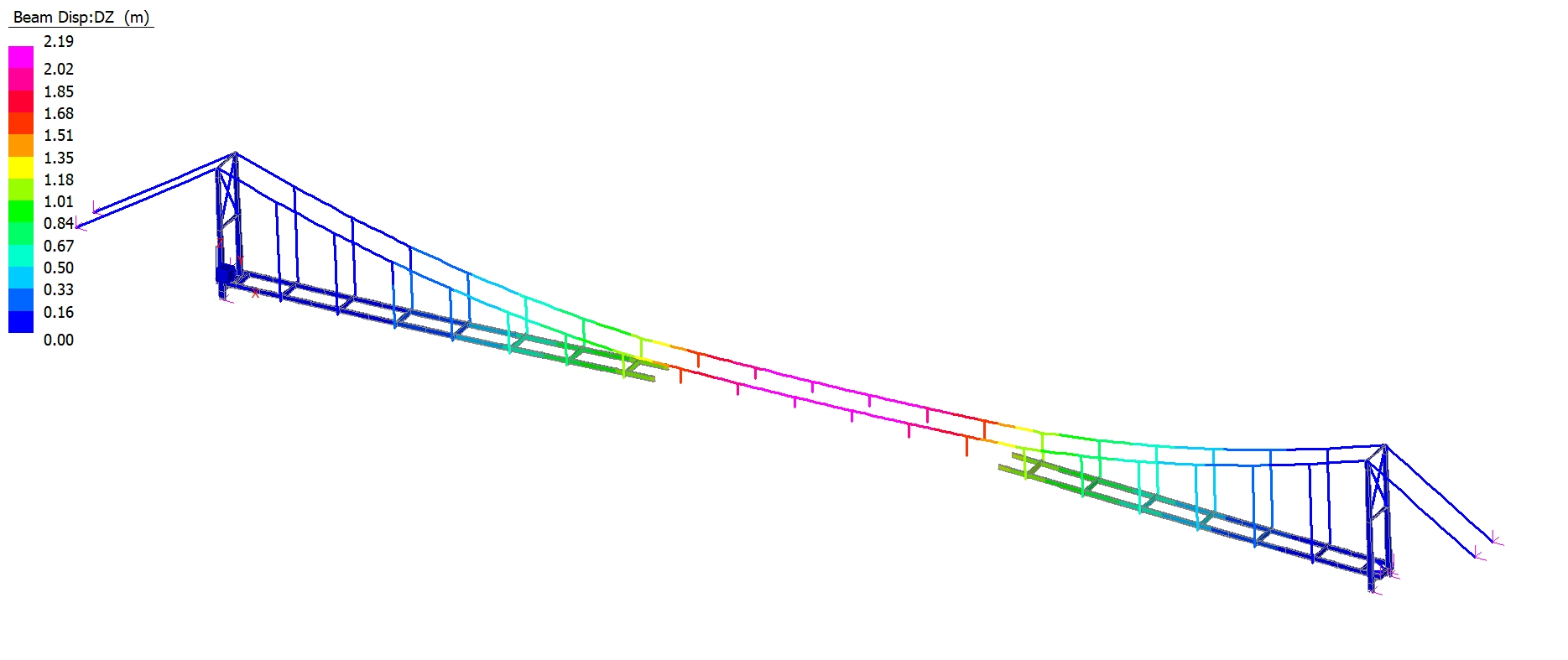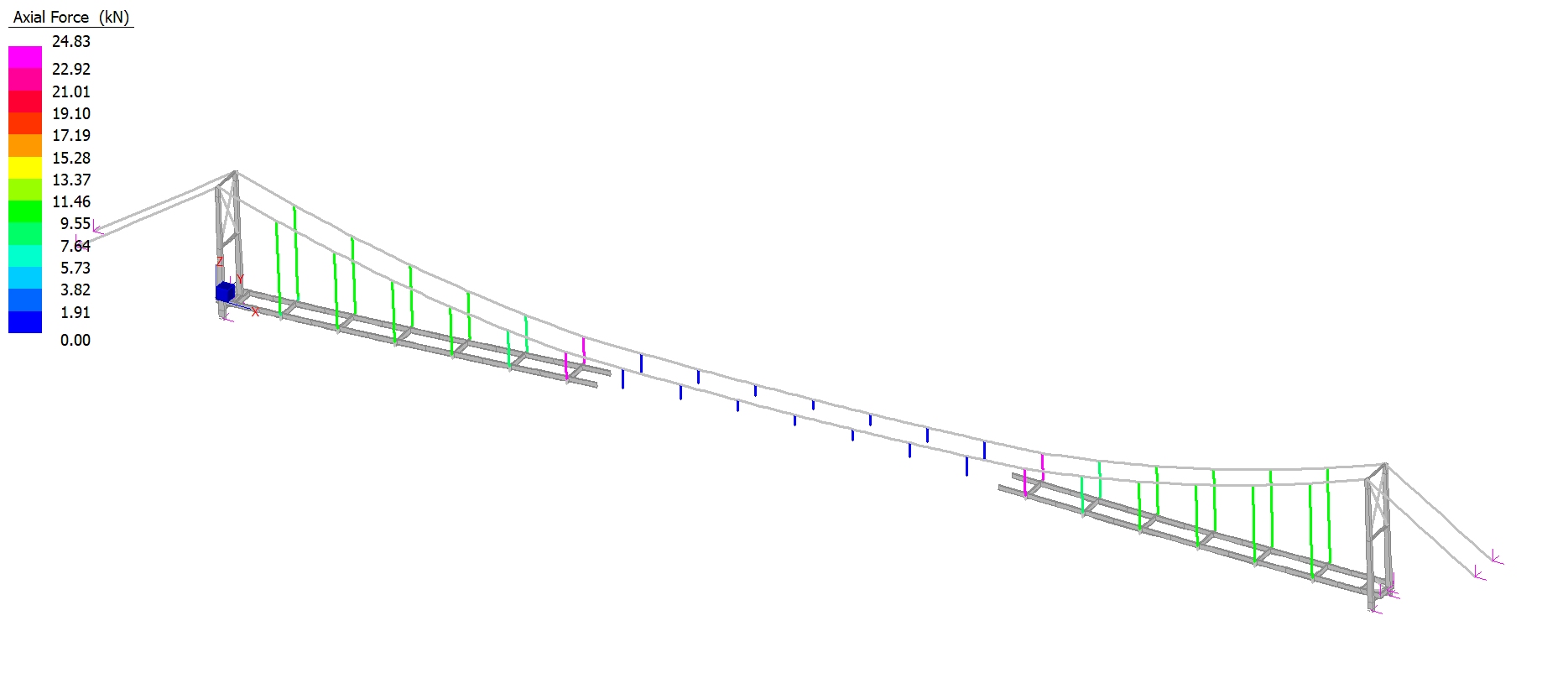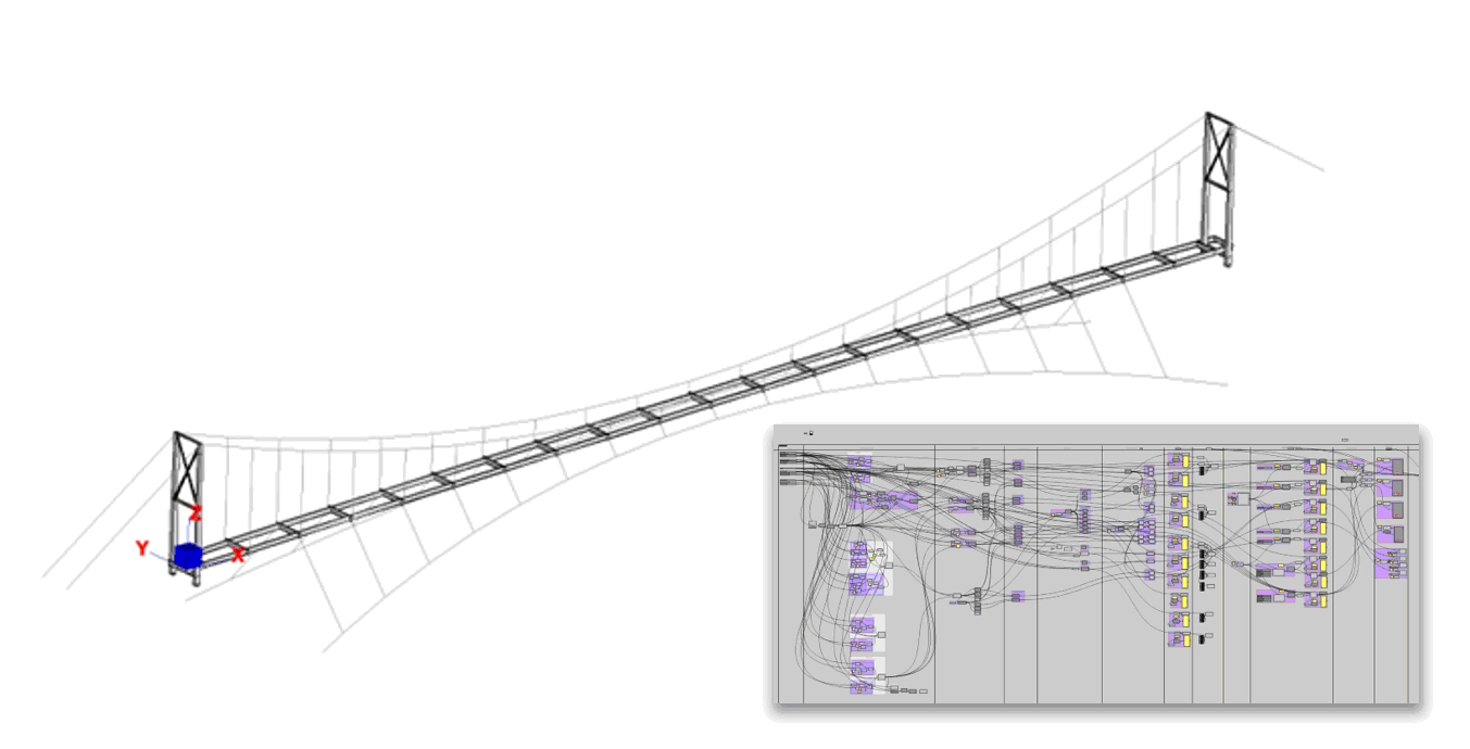 Sorge sospeso a 100 metri di altezza, sopra lo spettacolare orrido creato dal torrente Mallero in Valmalenco (SO), il ponte ciclopedonale che collega le localita' di Mossini e Ponchiera. L'opera commissionata dal Comune di Sondrio e' stata progettata da MAFFEIS ENGINEERING S.p.A., capogruppo del raggruppamento che comprende Studio Moncecchi Associati, Arch. Francesco Venzi e Se.i.co. e realizzata da C.M.M. F.lli Rizzi s.r.l. Durante tutto l'iter progettuale, che il raggruppamento ha seguito dal preliminare all'esecutivo, si sono indagate in modo approfondito tutte le specificita' di una struttura di questo tipo, soggetta alle azioni dinamiche indotte dal vento oltre che alla problematica del comfort della folla in attraversamento. L'architettura strutturale del ponte e' di tipo tensostrutturale, ovvero una passerella sospesa con funi superiori portanti principali e funi stabilizzanti inferiori secondarie. L'opera ha una luce di attraversamento di circa 146 mt ed una larghezza calpestabile di 2.90 mt. La struttura portante e' costituita da un impalcato in struttura metallica (costituito da due travi principali a doppio T ad anima inclinata) e soletta in calcestruzzo. L'impalcato e' connesso alle funi portanti mediante una pendinatura avente un passo di circa 7.20 mt. Al fine di ottenere una struttura stabile anche per le azioni laterali dovute al vento, sono state messe delle funi stabilizzanti disposte secondo una configurazione spaziale, inizialmente in equilibrio sotto le azioni di tensione iniziale dovute ai carichi permanenti. Il sistema di sospensione e' realizzato con funi costituite da fili di acciaio ad alta resistenza zincati a caldo. Sia le funi portanti (agganciate ai piloni alti 16 mt) sia i cavi stabilizzanti sono funi chiuse FLC, mentre le pendinature sono realizzate con funi spiroidali; i cavi portanti principali hanno un diametro di 80-84 mm, gli stabilizzanti 56 mm e le pendinature tra i 16 e i 20 mm. Le funi stabilizzanti sono caratterizzate da curvature nei piani verticali e orizzontali in modo da ottenere una risposta efficace contro le azioni dei carichi gravitazionali e le azioni di sollevamento e trascinamento indotte dal vento. E’ stato realizzato un modello FEM di calcolo Straus7 comprensivo di antenne, impalcato e cavi, non solo per il calcolo degli stati di esercizio, ma anche per la simulazione, tramite stage analysis di tutte le fasi di montaggio del ponte, permettendone la supervisione e il monitoraggio. Il modello e' stato realizzato mediante un approccio parametrico, mediante interfaccia Rhinoceros-Grasshopper resa possibile per mezzo di un codice personalizzato realizzato con l'opzione API (Application Program Interface) di Straus7. Testo, foto e immagine del modello di calcolo per gentile concessione di Maffeis Engineering Spa. |
