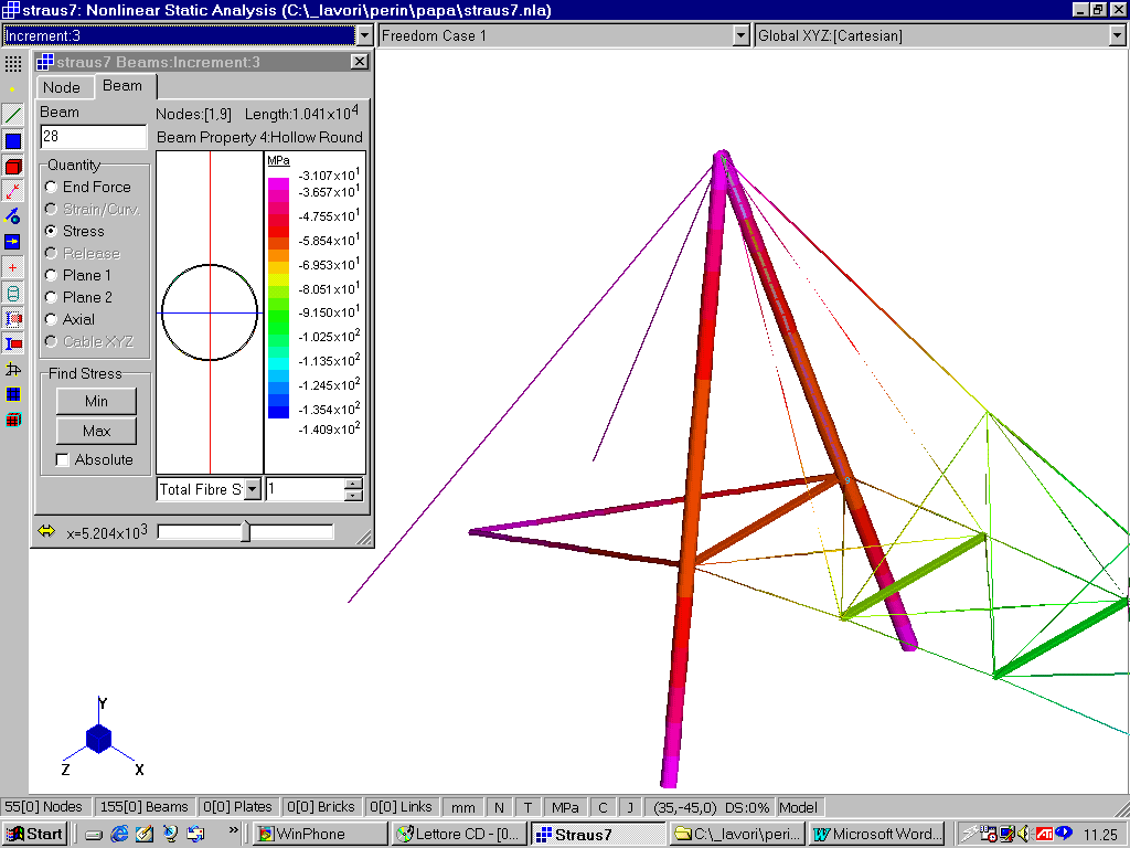 E' stato eseguito un calcolo di verifica della struttura, utlizzando il programma ad elementi finiti STRAUS.