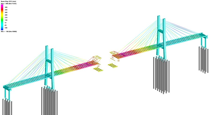 Nel nord del Peru', nella regione amazzonica di Loreto, e precisamente nella citta' di Iquitos, capoluogo di oltre 300.000 abitanti, la Cimolai S.p.a. ha realizzato il nuovo ponte strallato in carpenteria metallica sul fiume Nanay, a poche centinaia di metri dallo sbocco nel Rio delle Amazzoni. L'opera avvia un importante progetto che mira a realizzare il collegamento terrestre della regione, ad oggi raggiungibile solo via fluviale o aerea, con il resto del paese e con le zone piu' interne della selva. Il ponte e' composto da una campata centrale di 241.5m e due campate laterali da 91.5m per un totale di 424.5m. I conci del ponte sono sollevati dal fiume mediante derrick su rotaie che permette inoltre l'installazione dei cavi lato fiume e la posa delle predalles prefabbricate. Mediante il software Straus7 e' stato eseguito il modello FEM globale a stage con elementi beam che ha permesso di verificare tutte le fasi di avanzamento della costruzione, di tesatura dei cavi, di getto e collaudo. Attraverso dettagliate analisi non lineari per geometria con la tecnica degli stages e' stato possibile seguire la deformata progressiva con precisione e giungere cosi' alla livelletta stradale finale, con pieno controllo delle evolute delle sollecitazioni. Inoltre, numerose verifiche di dettagli costruttivi sono state condotte su modelli locali realizzati con elementi plate, con sollecitazioni estratte del modello globale grazie alla tecnica del sub modeling. Testo, foto e immagine del modello di calcolo per gentile concessione di Cimolai Spa. |