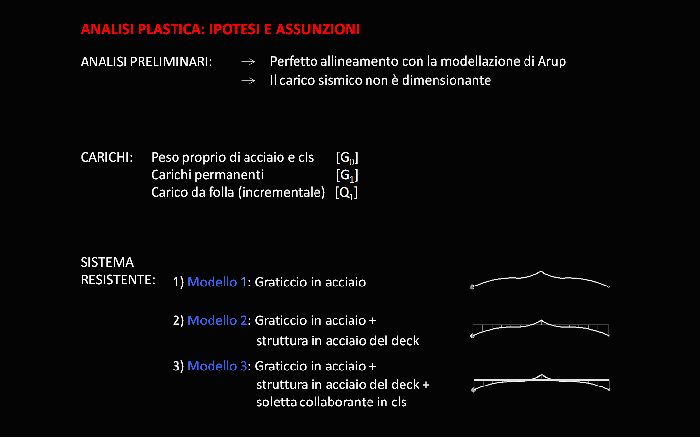 Alla luce delle più recenti normative nazionali ed europee, vengono introdotte ed analizzate le metodologie di calcolo plastico a rottura previste in sede normativa. In aggiunta ai più didattici metodi di calcolo rigido-plastico (metodo cinematico) ed elasto-plastico (metodo evolutivo) vengono introdotte le possibili analisi elasto-plastiche non-lineari incrementali, condotte per mezzo di codici di calcolo ad elementi finiti, ed applicate in particolare per sistemi strutturali a geometria complessa e forma non regolare. Lo studio è stato applicato al complesso metallico denominato “passerella De Gasperi” di Milano (Progettista Esecutivo dell’opera: società ARUP ITALIA S.R.L.), sistema di luce 60 m attualmente in realizzazione, di forma non regolare, indagando dapprima l’idoneità normativa per l’applicabilità del calcolo plastico globale secondo EN1993-2005 ed NTC2008, e procedendo poi all’estrazione degli effettivi moltiplicatori critici di collasso plastico. Le analisi numeriche sono state condotte per mezzo del codice FEM Straus7 solutore non-lineare per geometria e materiale, con specifici requisiti di accoppiamento assial-flessionale nella risposta del materiale e progressiva formazione di elasto-plasticità nella sezione. |