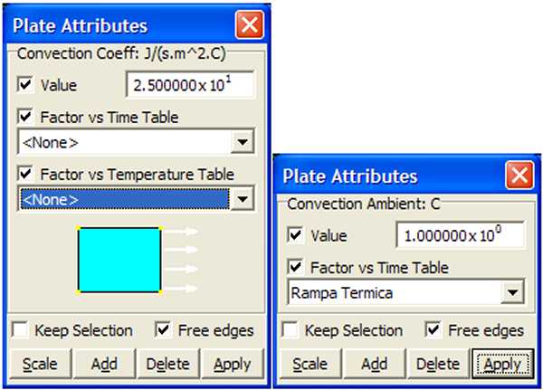 Nella sezione "Table" della finestra di dialogo per la definizione dei materiali è possibile assegnare le tabelle in relazione alla variazione delle suddette grandezze con la temperatura od il tempo.