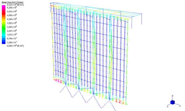A tal fine è stata studiata la facciata in vetro-acciaio del Triton 5 a Londra. Per le due tipologie in esame sono state effettuate le verifiche degli stati deformativi (fig.4)