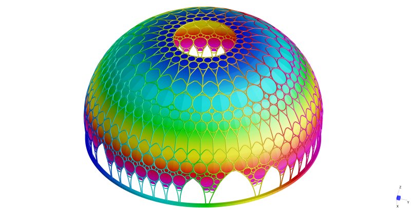 La copertura della piazza centrale del nuovo complesso EXPO 2020 a Dubai, progettata dagli architetti Adrian Smith e Gordon Gill, e' una cupola di acciaio rivestita di tessuto high-tech per proiezioni immersive a 360 gradi, di ben 130m di diametro e 67m di altezza. La struttura metallica del peso di circa 2500t e' costituita da elementi tubolari, tra loro interconnessi cosi' da realizzare un complesso motivo ad anelli. Opera della Cimolai sono il progetto costruttivo con ingegnerizzazione del nodo e il progetto di montaggio e delle relative attrezzature, oltre che la produzione e il montaggio della cupola. Cimolai ha utilizzato il codice di calcolo Straus7 per realizzare il modello FEM della cupola per le verifiche di resistenza e di stabilita' durante le fasi di montaggio step by step e ottenere la congruenza desiderata. Sono state, inoltre, modellate a elementi plate con mesh raffinata le zone di interazione tra gli anelli, per le verifiche di resistenza locale, utilizzando sia il solutore lineare che non lineare per materiale, e per quelle di stabilita' con il solutore Linear buckling. Testo, foto e immagine del modello di calcolo per gentile concessione di Cimolai Spa. |