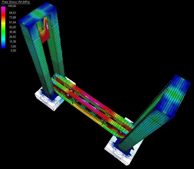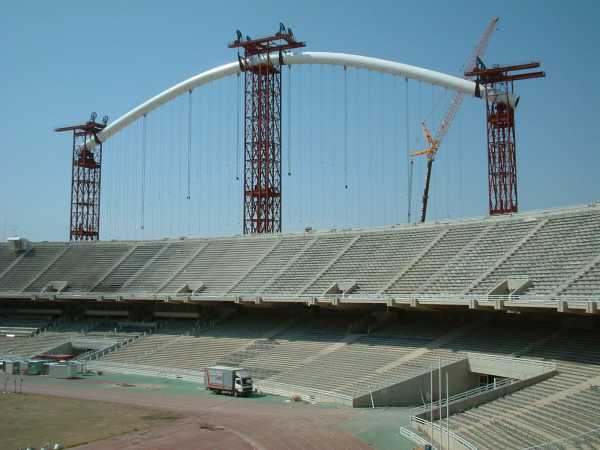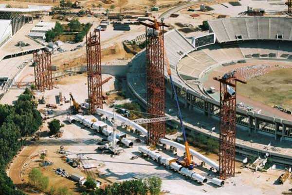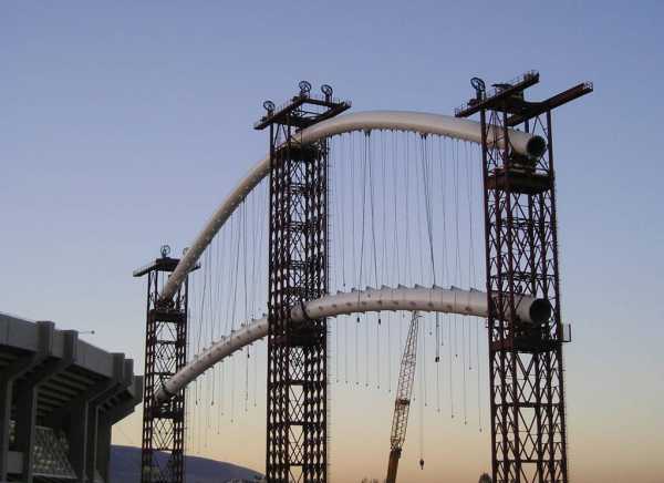 sono incastrate su questo, e sorrette verso l'estremita' a sbalzo da funi ancorate all'arco superiore.