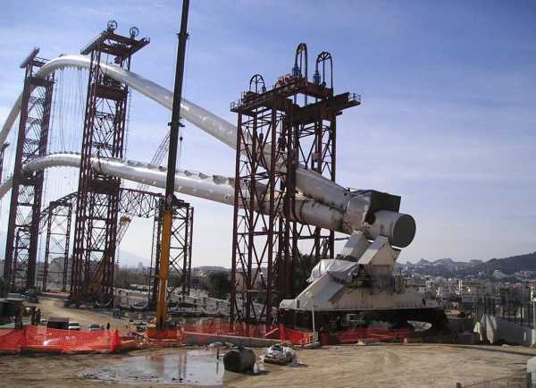 3 metri di diametro e spessore sino oltre i 90 millimetri. I due archi sono collegati da funi.