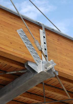 Dato l’elevato numero di combinazioni di carico e volendo prediligere la facilità di consultazione ed interpretazione dei risultati, nella modellazione si è optato per l’utilizzo di elementi tipo Beam per le travi principali in legno lamellare adottando degli elementi rigidi (“Rigid Link”) per schematizzare le eccentricità di connessione tra stralli travi principali e controventi di impalcato. Ciò, a scapito di una non apprezzabile perdita di precisione, ha consentito una notevole riduzione degli elementi finiti utilizzati con conseguente contenimento dei tempi di calcolo e maggior chiarezza e confrontabilità dei risultati.