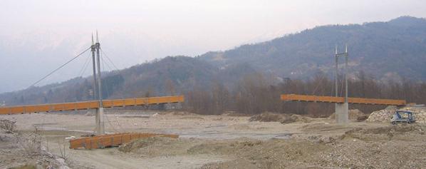 Le ristrette tempistiche di cantiere, unitamente alle particolari condizioni ambientali costituite dal tempo atmosferico, instabile durante il periodo della realizzazione, e all’anomalo comportamento idraulico del torrente Tesa, soggetto a repentine e violente piene, hanno suggerito di realizzare il montaggio senza utilizzare strutture di supporto intermedie.