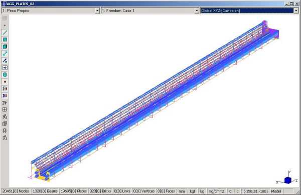 Modello in Straus7 di 21.366 elementi e 121.472 gradi di liberta'