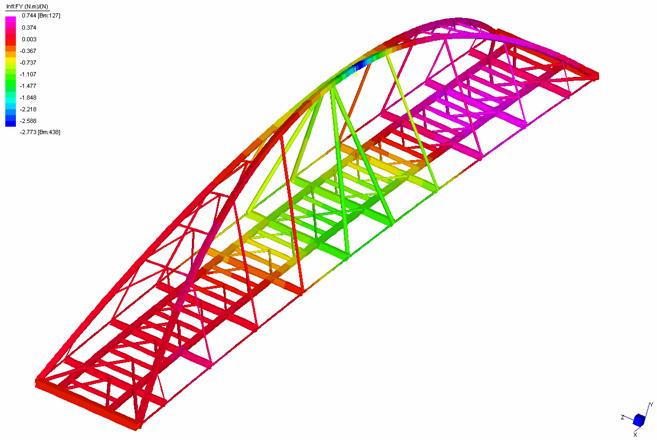 Per determinare gli effetti (influenza) del carico mobile applicato rispetto al momento flettente all’estratosso dell’arco conviene visualizzare Il contour di Influence FY.