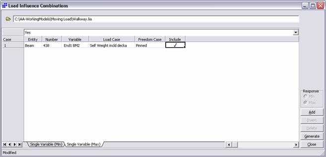 Il passo successivo in questo tipo di analisi consiste nella definizione di una o più Response Variables. Una Response Variable è la grandezza nei confronti della quale si vuole determinare la linea di influenza: per esempio, se si seleziona la Bending Moment Response Variable in un punto specifico si otterrà la linea di influenza del momento specifico in quella sezione.