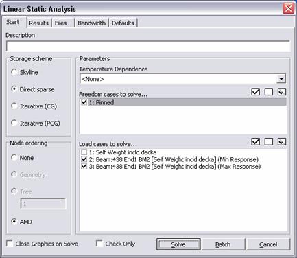Per far questo, come d’uso, basta selezionare il solutore Linear Static, settare le opzioni, e premere Solve.