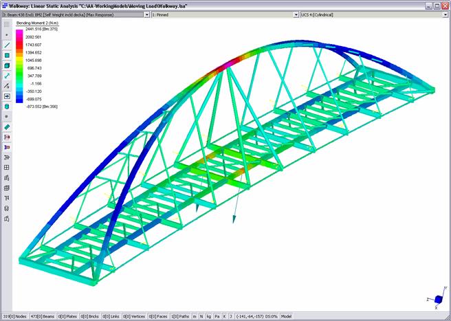 La release 2.4. di Straus7 presenta una serie di funzionalità specifiche per l’analisi di strutture (quali ponti) soggette a carichi mobili. Si tratta sia della determinazione delle linee di influenza, che della descrizione al vero della risposta dinamica della struttura al passaggio di treni di carico prefigurati.
