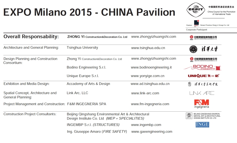 Tsinghua University in collaborazione con lo studio di progettazione studio Link-arc di NewYork ha progettato ‘il padiglione della Cina’ per l’EXPO Milano 2015 “Land of Hope”. La struttura del tetto ondulato è pensata come un elemento galleggiante al di sotto del quale prendono forma gli spazi per i programmi culturali ed espositivi .Il padiglione cinese è il secondo più grande padiglione dopo quello italiano ed è caratterizzato da una struttura complessa ma affascinante. |