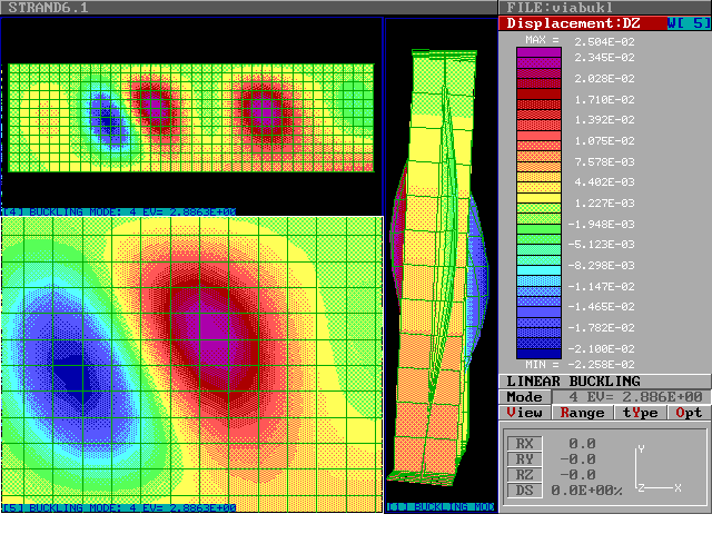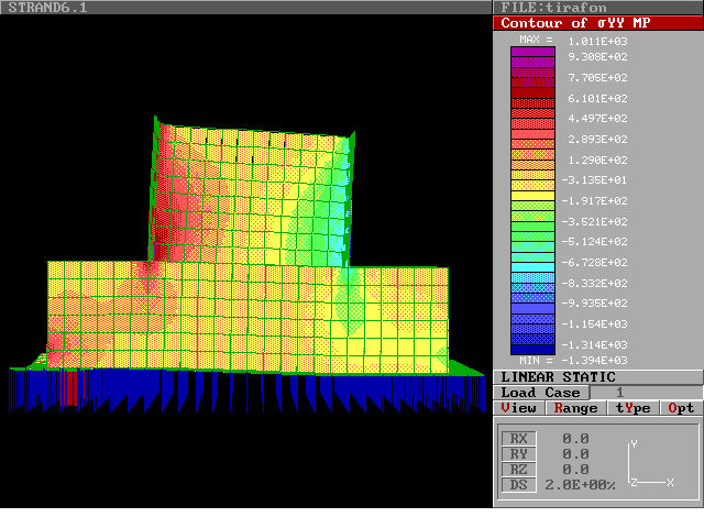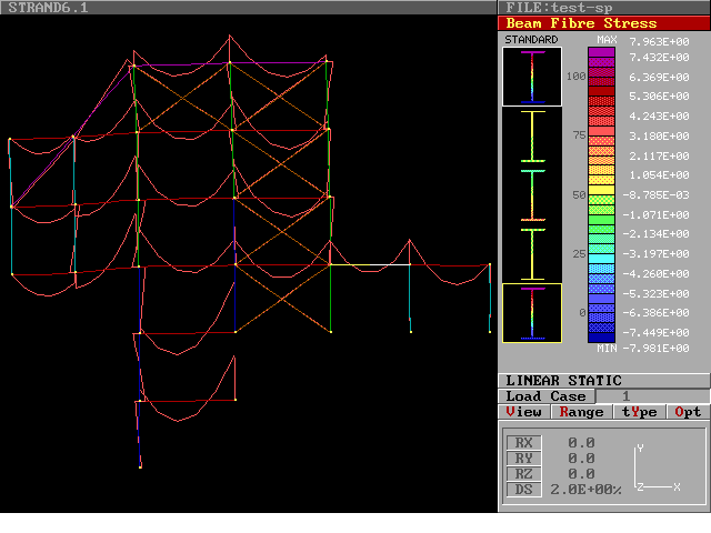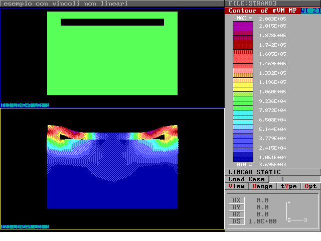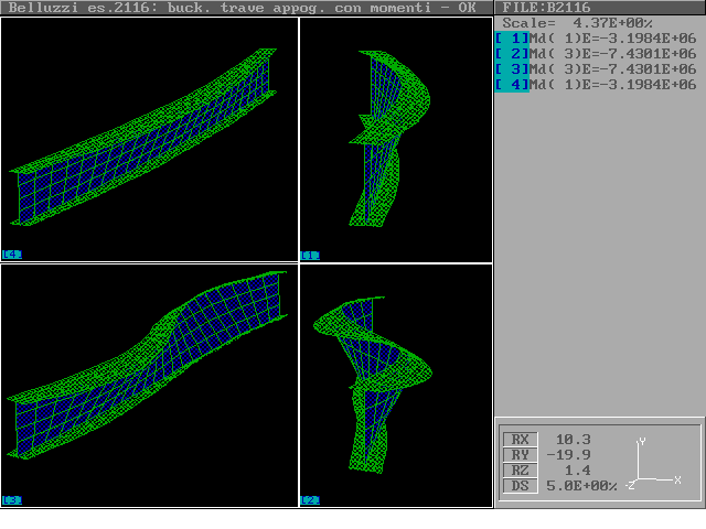 Altre funzioni di utilità garantiscono invece, in fase di post-processamento dei risultati, una buona e sintetica documentazione grafica del calcolo svolto (figure 6,7), includendo la possibilità di animare le deformate ed aggiornando contemporaneamente la rappresentazione per contour di tensioni, deformazioni ed altre grandezze di interesse.