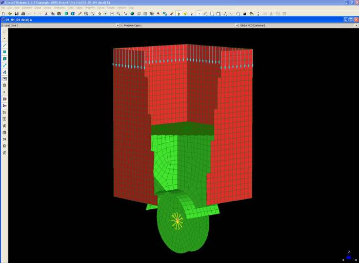 For the statical analysis of structure, a three-dimensional beam and plate model is made. The model contains all elements of the structure except the moving part of the roof, which is simulated by groups of concentrated forces.