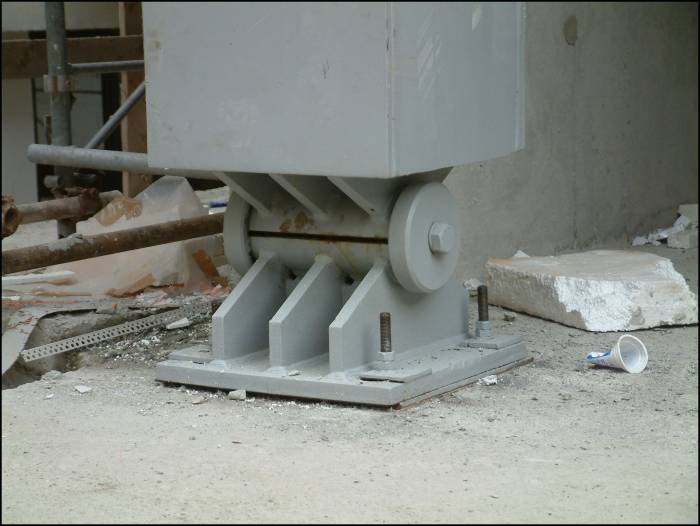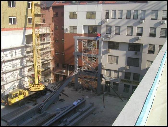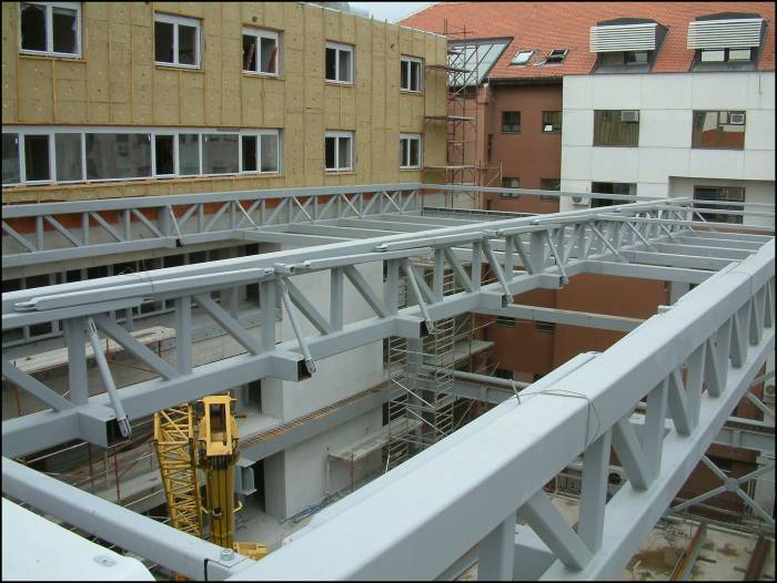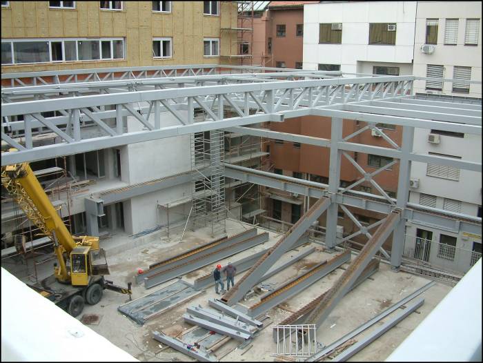 The main elements of the vertical steel frame are the columns connected with horizontal beams.