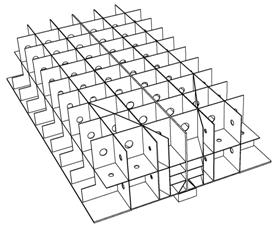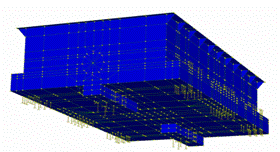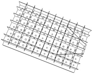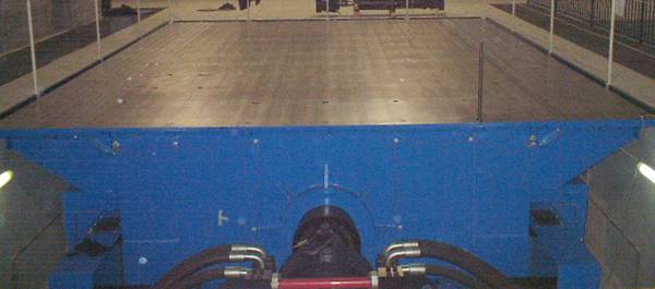La tavola è costituita da una struttura cellulare in acciaio (vedi Figura 4 e Figura 5) , il primo obbiettivo della modellazione è stato quello di rendere la tavola il più rigida possibile (Frequenza propria ≥60Hz) ma allo stesso tempo molto leggera (peso ≤35ton) al fine di diminuire il più possibile l’effetto del momento ribaltante dovuto al disallineamento tra il punto di applicazione della forza e il centro delle masse.