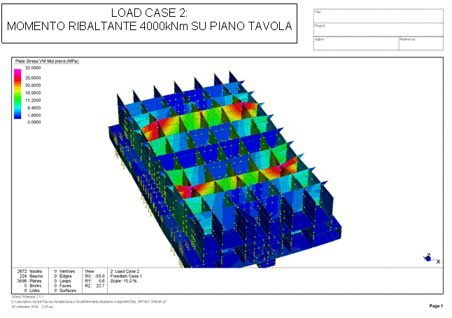 In una seconda fase si sono svolte analisi per verificare il comportamento dei vari elementi di irrigidimento della tavola e delle guide sottoposti a varie casistiche di prova, con strutture di diversa altezza e peso e con i massimi carichi amissibili combinati tra di loro.