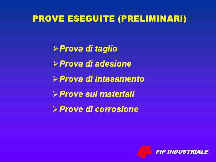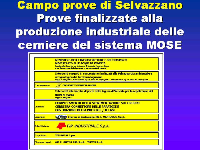 Seguono alcune slides tratte dalla relazione tecnica