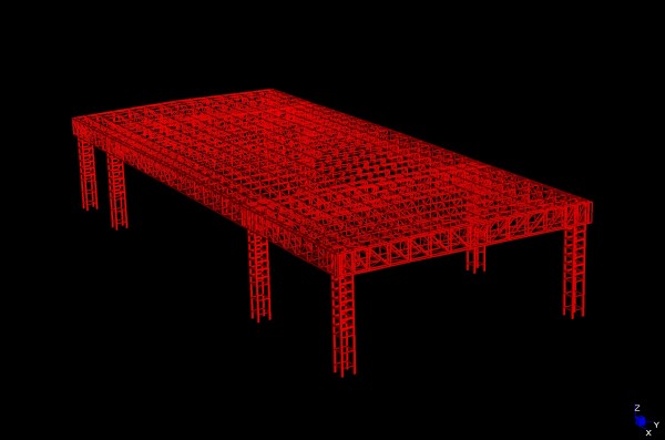 reticolo di membrature avente orditura bidirezionale in appoggio sulle grandi torri. Strisce reticolari di maggiore rigidezza sono