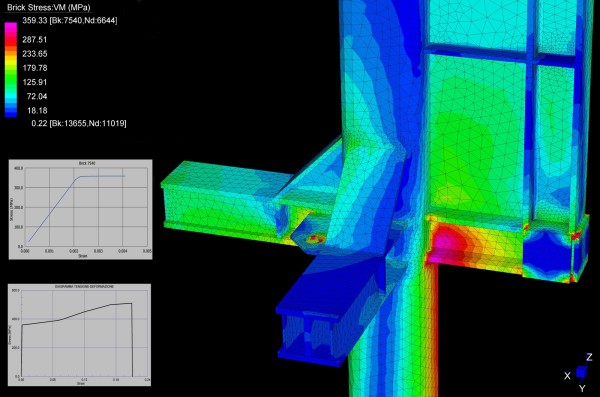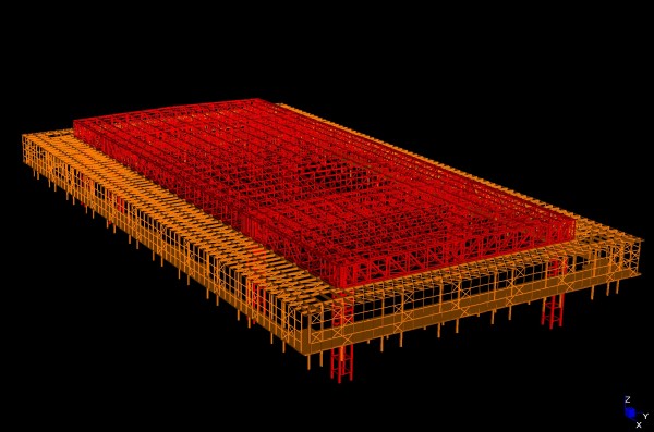 verticali e diagonali. Le strisce perimetrali sono composte da travature reticolari con funzionamento a portale,