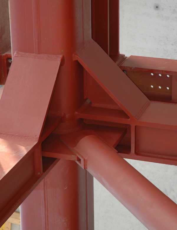 La maglia strutturale è di 5.4 m×5.4 m. Il graticcio di