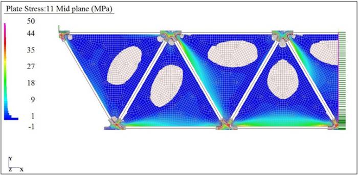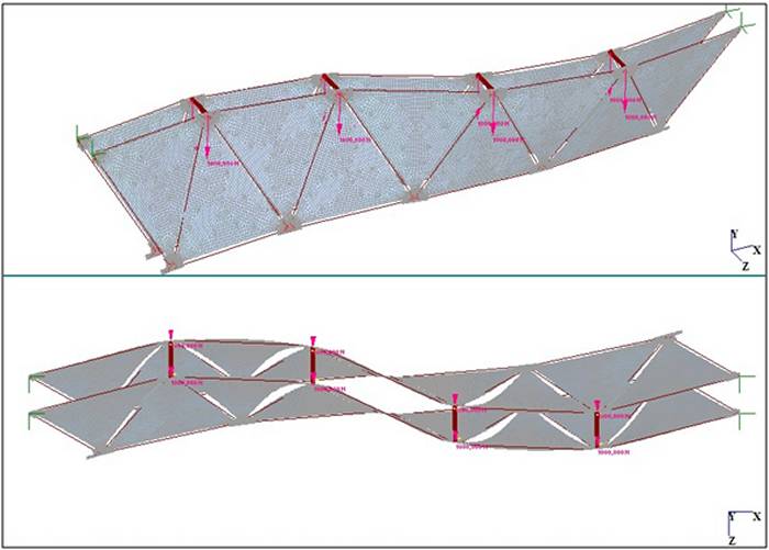 IL MODELLO AGLI ELEMENTI FINITI - L’analisi numerica sviluppata per il prototipo TVT con il metodo degli elementi finiti, ed eseguita con il programma Straus7, si prefissa di approfondire lo studio della risposta meccanica della trave nel proprio piano e fuori piano.