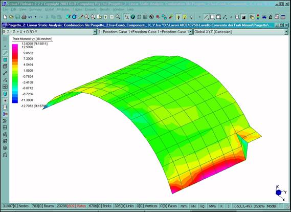 Fig. 15 – Diagramma del momento flettente Myy per la comb. n°1 nella volta del refettorio.