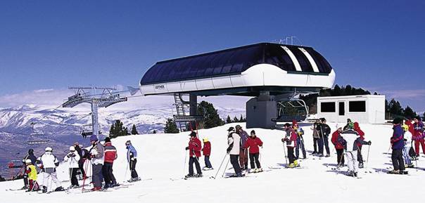 Seggiovia LPA ad ammorsamento automatico: stazione a monte e pista da sci