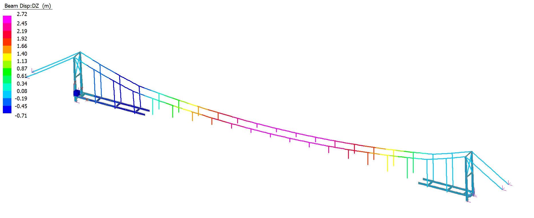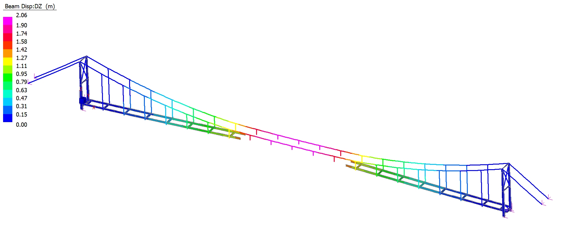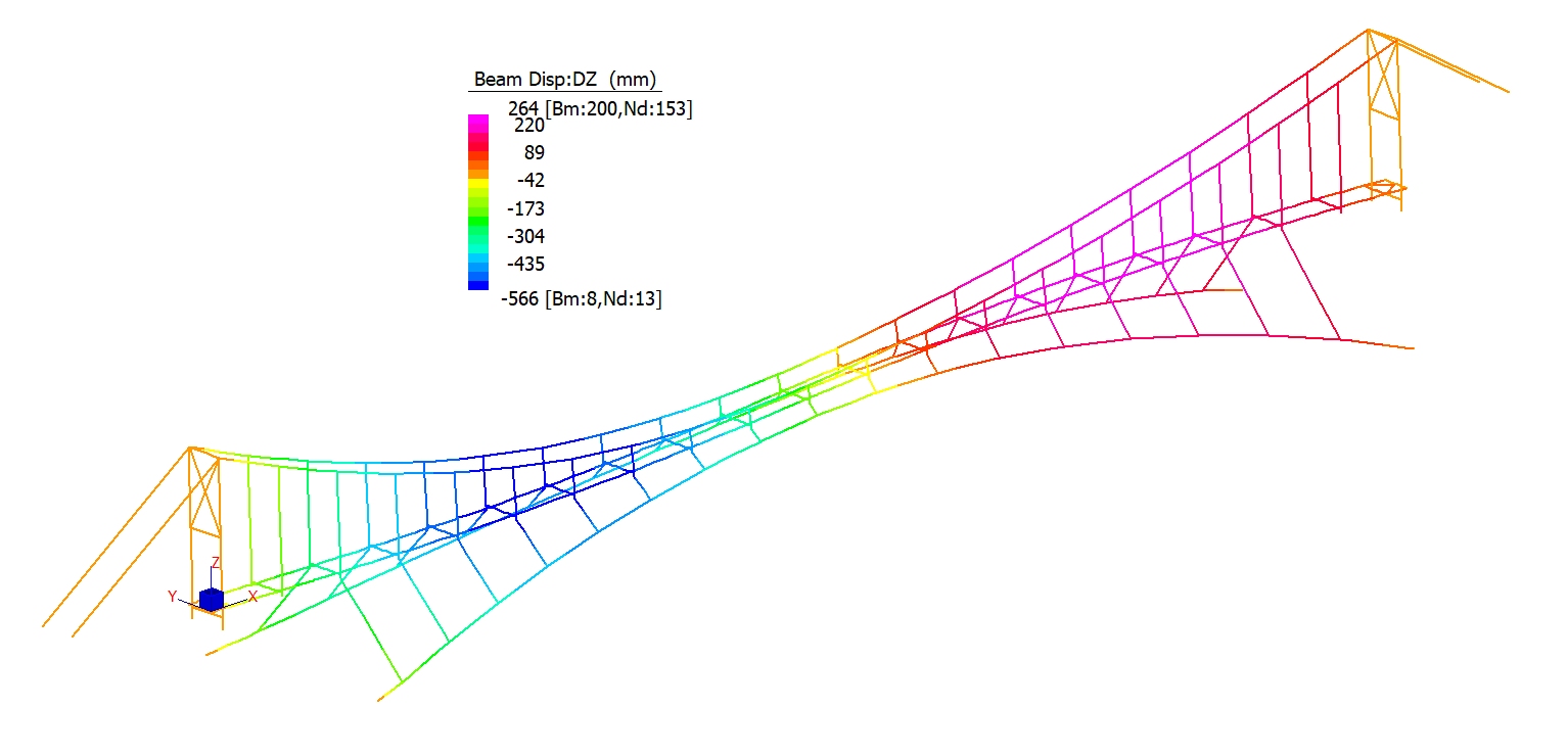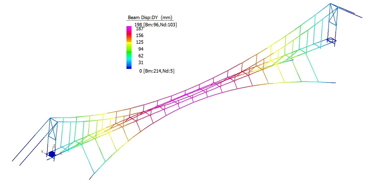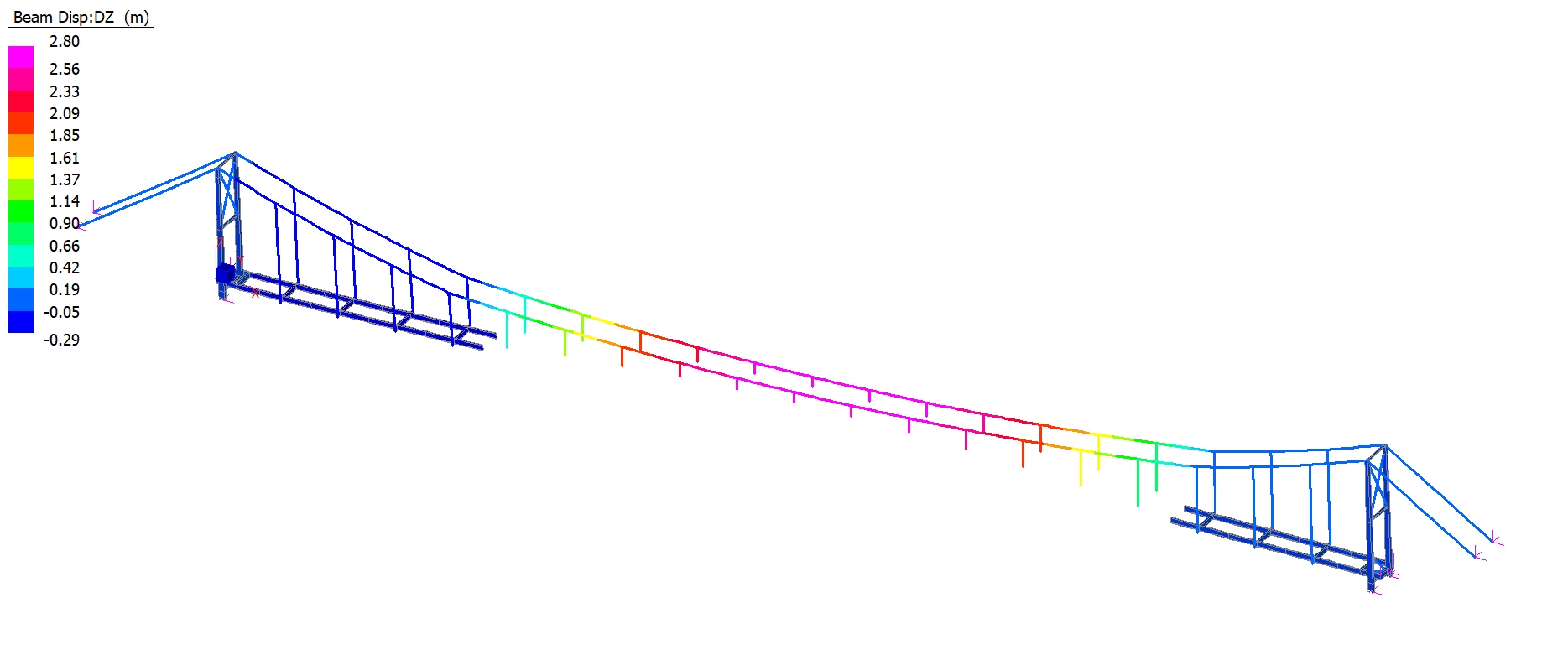 Sorge sospeso a 100 metri di altezza, sopra lo spettacolare orrido creato dal torrente Mallero in Valmalenco (SO), il ponte ciclopedonale che collega le localita' di Mossini e Ponchiera. L'opera commissionata dal Comune di Sondrio e' stata progettata da MAFFEIS ENGINEERING S.p.A., capogruppo del raggruppamento che comprende Studio Moncecchi Associati, Arch. Francesco Venzi e Se.i.co. e realizzata da C.M.M. F.lli Rizzi s.r.l. Durante tutto l'iter progettuale, che il raggruppamento ha seguito dal preliminare all'esecutivo, si sono indagate in modo approfondito tutte le specificita' di una struttura di questo tipo, soggetta alle azioni dinamiche indotte dal vento oltre che alla problematica del comfort della folla in attraversamento. L'architettura strutturale del ponte e' di tipo tensostrutturale, ovvero una passerella sospesa con funi superiori portanti principali e funi stabilizzanti inferiori secondarie. L'opera ha una luce di attraversamento di circa 146 mt ed una larghezza calpestabile di 2.90 mt. La struttura portante e' costituita da un impalcato in struttura metallica (costituito da due travi principali a doppio T ad anima inclinata) e soletta in calcestruzzo. L'impalcato e' connesso alle funi portanti mediante una pendinatura avente un passo di circa 7.20 mt. Al fine di ottenere una struttura stabile anche per le azioni laterali dovute al vento, sono state messe delle funi stabilizzanti disposte secondo una configurazione spaziale, inizialmente in equilibrio sotto le azioni di tensione iniziale dovute ai carichi permanenti. Il sistema di sospensione e' realizzato con funi costituite da fili di acciaio ad alta resistenza zincati a caldo. Sia le funi portanti (agganciate ai piloni alti 16 mt) sia i cavi stabilizzanti sono funi chiuse FLC, mentre le pendinature sono realizzate con funi spiroidali; i cavi portanti principali hanno un diametro di 80-84 mm, gli stabilizzanti 56 mm e le pendinature tra i 16 e i 20 mm. Le funi stabilizzanti sono caratterizzate da curvature nei piani verticali e orizzontali in modo da ottenere una risposta efficace contro le azioni dei carichi gravitazionali e le azioni di sollevamento e trascinamento indotte dal vento. E’ stato realizzato un modello FEM di calcolo Straus7 comprensivo di antenne, impalcato e cavi, non solo per il calcolo degli stati di esercizio, ma anche per la simulazione, tramite stage analysis di tutte le fasi di montaggio del ponte, permettendone la supervisione e il monitoraggio. Il modello e' stato realizzato mediante un approccio parametrico, mediante interfaccia Rhinoceros-Grasshopper resa possibile per mezzo di un codice personalizzato realizzato con l'opzione API (Application Program Interface) di Straus7. Testo, foto e immagine del modello di calcolo per gentile concessione di Maffeis Engineering Spa. |