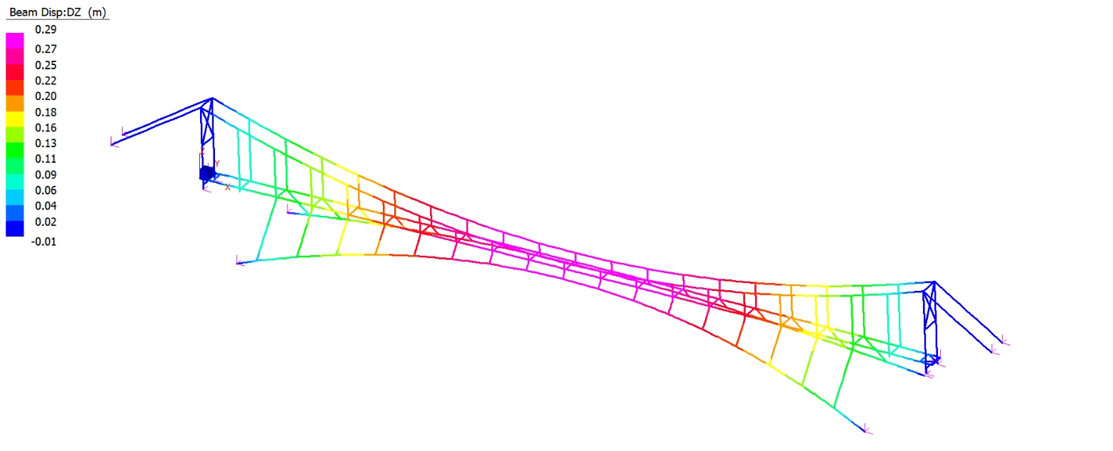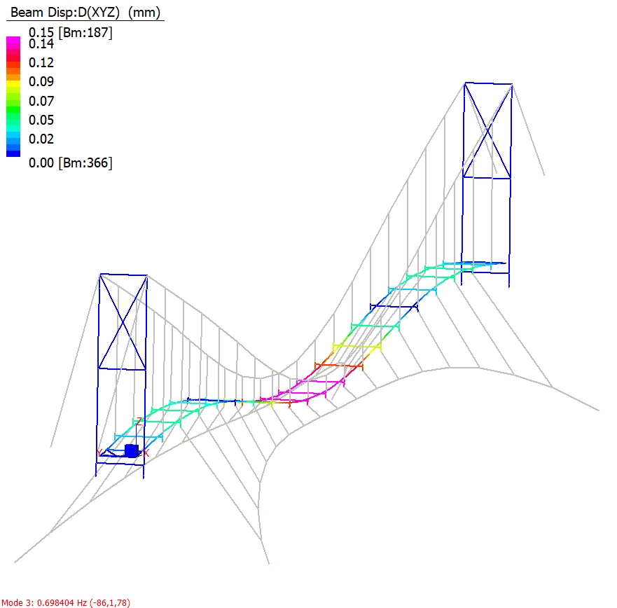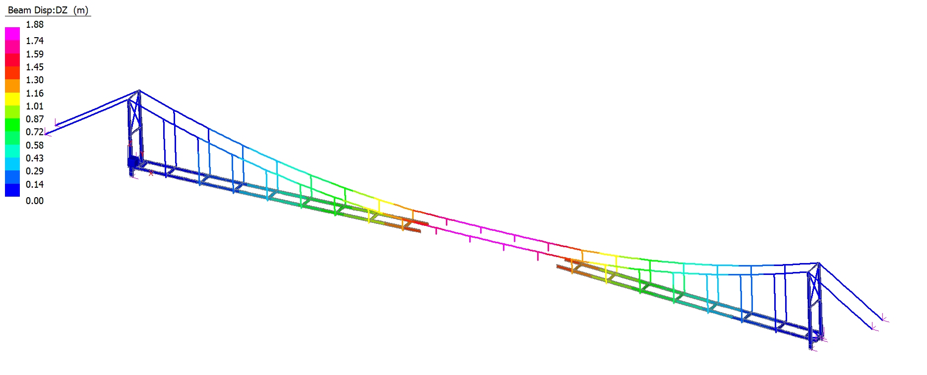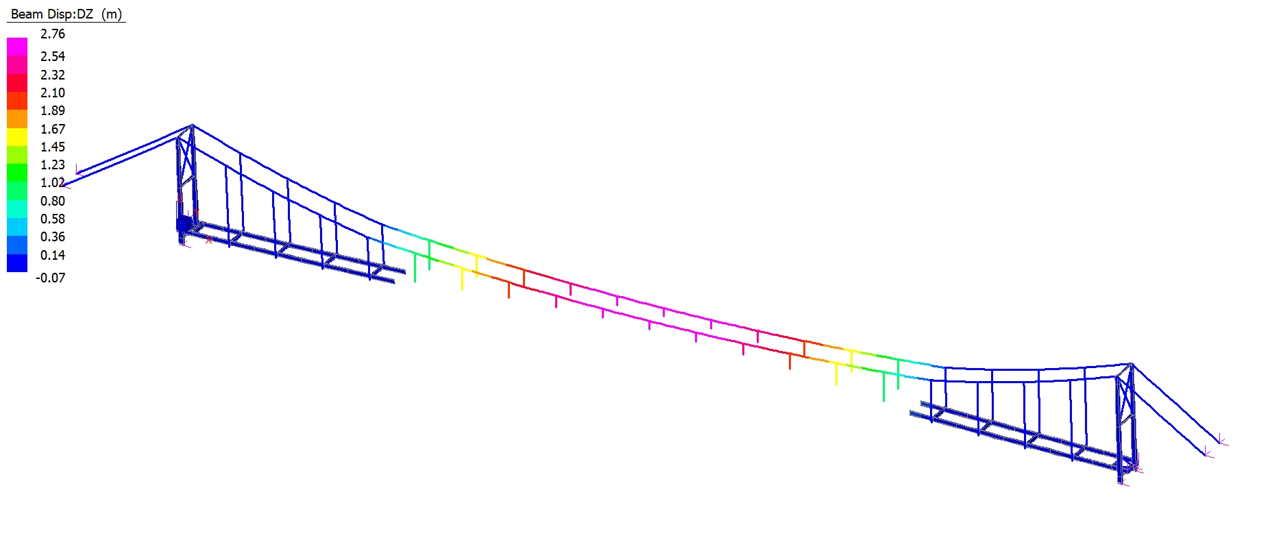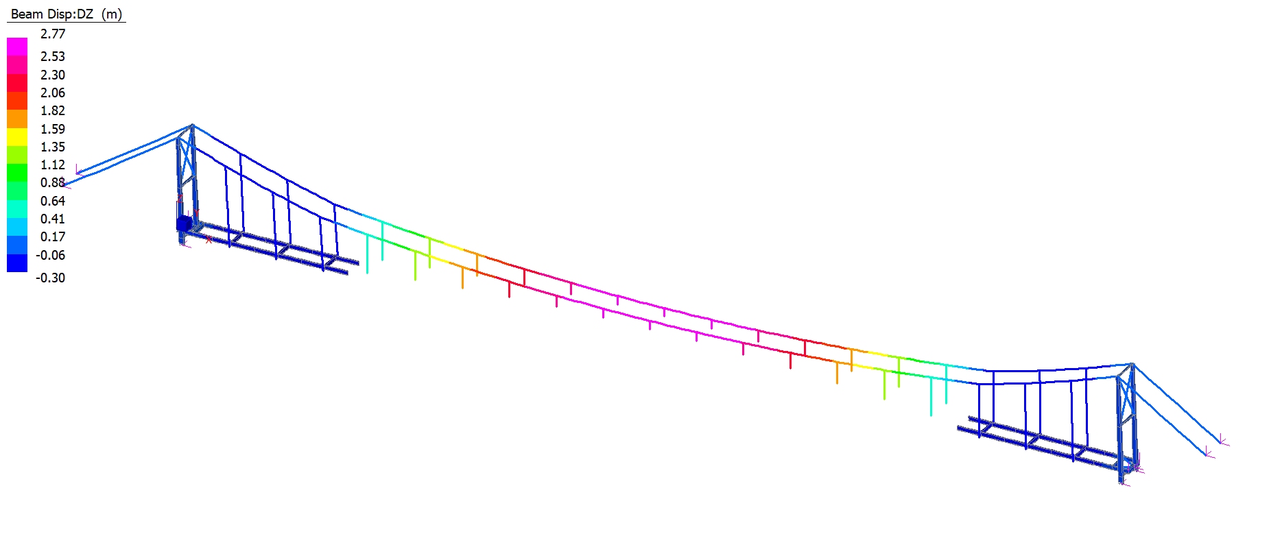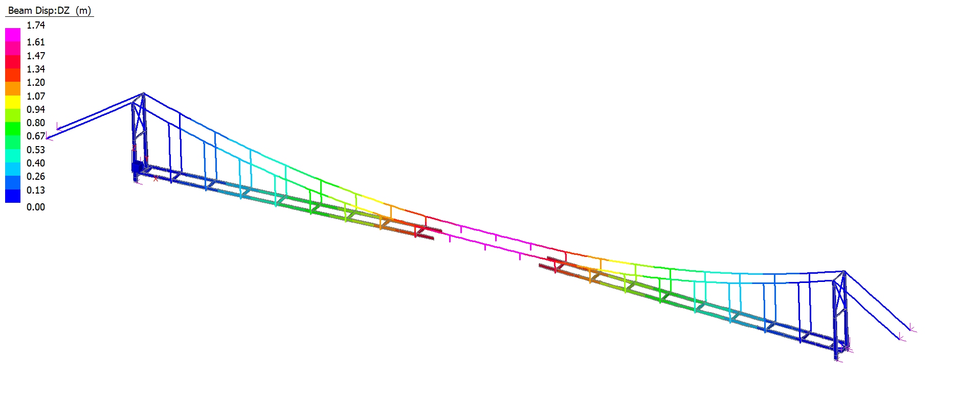 Sorge sospeso a 100 metri di altezza, sopra lo spettacolare orrido creato dal torrente Mallero in Valmalenco (SO), il ponte ciclopedonale che collega le localita' di Mossini e Ponchiera. L'opera commissionata dal Comune di Sondrio e' stata progettata da MAFFEIS ENGINEERING S.p.A., capogruppo del raggruppamento che comprende Studio Moncecchi Associati, Arch. Francesco Venzi e Se.i.co. e realizzata da C.M.M. F.lli Rizzi s.r.l. Durante tutto l'iter progettuale, che il raggruppamento ha seguito dal preliminare all'esecutivo, si sono indagate in modo approfondito tutte le specificita' di una struttura di questo tipo, soggetta alle azioni dinamiche indotte dal vento oltre che alla problematica del comfort della folla in attraversamento. L'architettura strutturale del ponte e' di tipo tensostrutturale, ovvero una passerella sospesa con funi superiori portanti principali e funi stabilizzanti inferiori secondarie. L'opera ha una luce di attraversamento di circa 146 mt ed una larghezza calpestabile di 2.90 mt. La struttura portante e' costituita da un impalcato in struttura metallica (costituito da due travi principali a doppio T ad anima inclinata) e soletta in calcestruzzo. L'impalcato e' connesso alle funi portanti mediante una pendinatura avente un passo di circa 7.20 mt. Al fine di ottenere una struttura stabile anche per le azioni laterali dovute al vento, sono state messe delle funi stabilizzanti disposte secondo una configurazione spaziale, inizialmente in equilibrio sotto le azioni di tensione iniziale dovute ai carichi permanenti. Il sistema di sospensione e' realizzato con funi costituite da fili di acciaio ad alta resistenza zincati a caldo. Sia le funi portanti (agganciate ai piloni alti 16 mt) sia i cavi stabilizzanti sono funi chiuse FLC, mentre le pendinature sono realizzate con funi spiroidali; i cavi portanti principali hanno un diametro di 80-84 mm, gli stabilizzanti 56 mm e le pendinature tra i 16 e i 20 mm. Le funi stabilizzanti sono caratterizzate da curvature nei piani verticali e orizzontali in modo da ottenere una risposta efficace contro le azioni dei carichi gravitazionali e le azioni di sollevamento e trascinamento indotte dal vento. E’ stato realizzato un modello FEM di calcolo Straus7 comprensivo di antenne, impalcato e cavi, non solo per il calcolo degli stati di esercizio, ma anche per la simulazione, tramite stage analysis di tutte le fasi di montaggio del ponte, permettendone la supervisione e il monitoraggio. Il modello e' stato realizzato mediante un approccio parametrico, mediante interfaccia Rhinoceros-Grasshopper resa possibile per mezzo di un codice personalizzato realizzato con l'opzione API (Application Program Interface) di Straus7. Testo, foto e immagine del modello di calcolo per gentile concessione di Maffeis Engineering Spa. |
