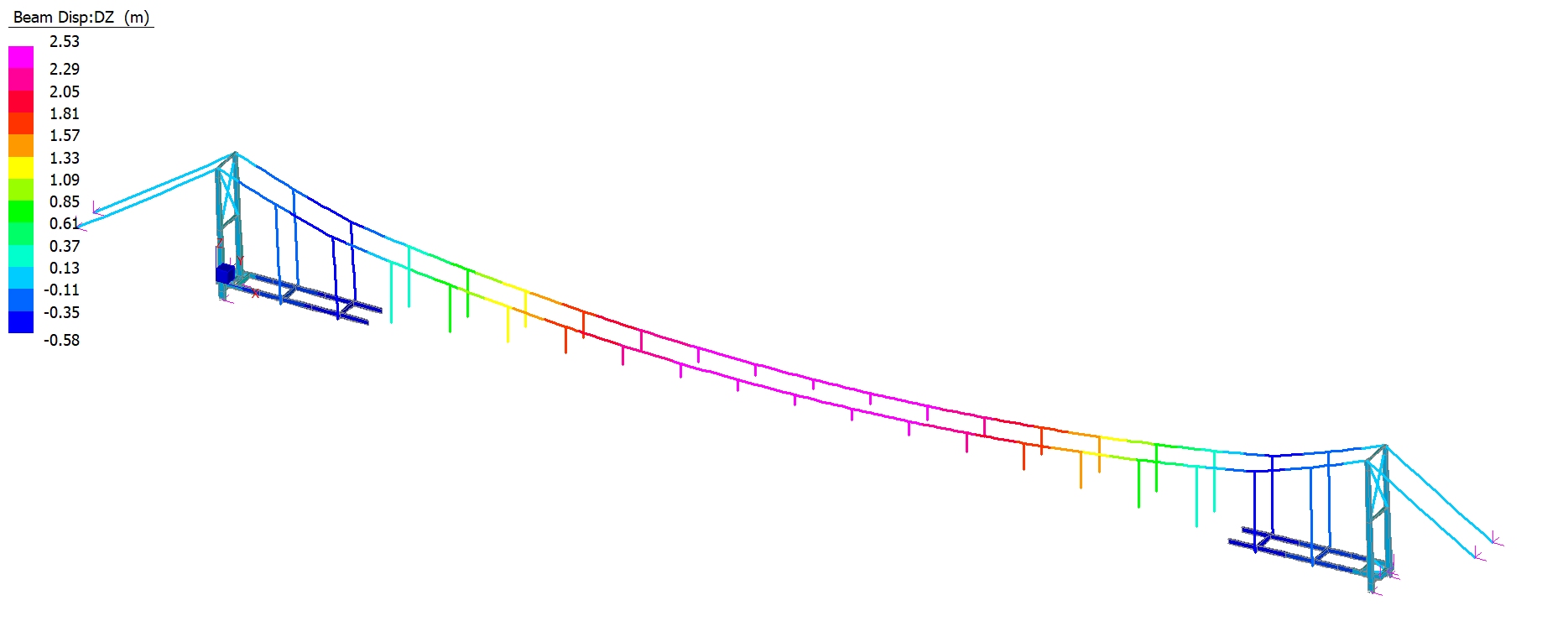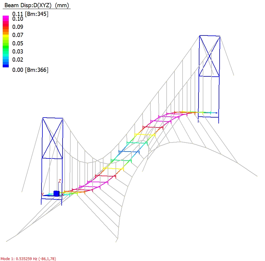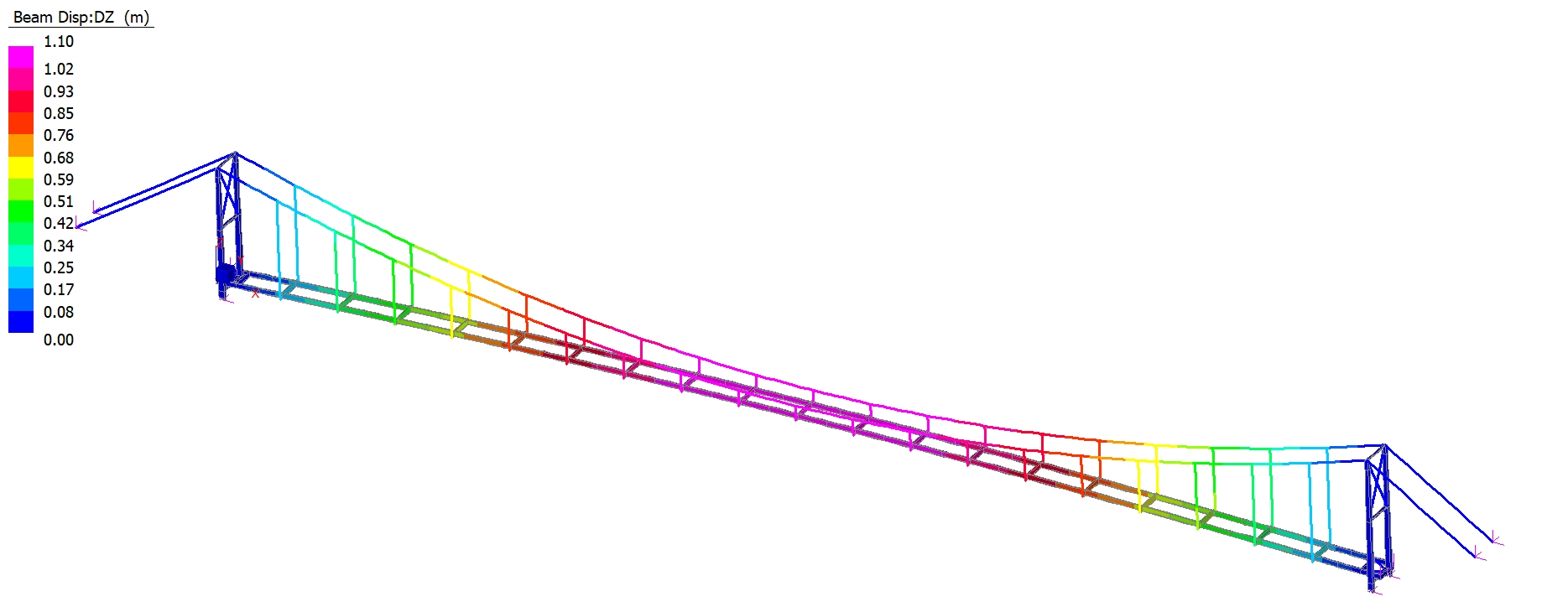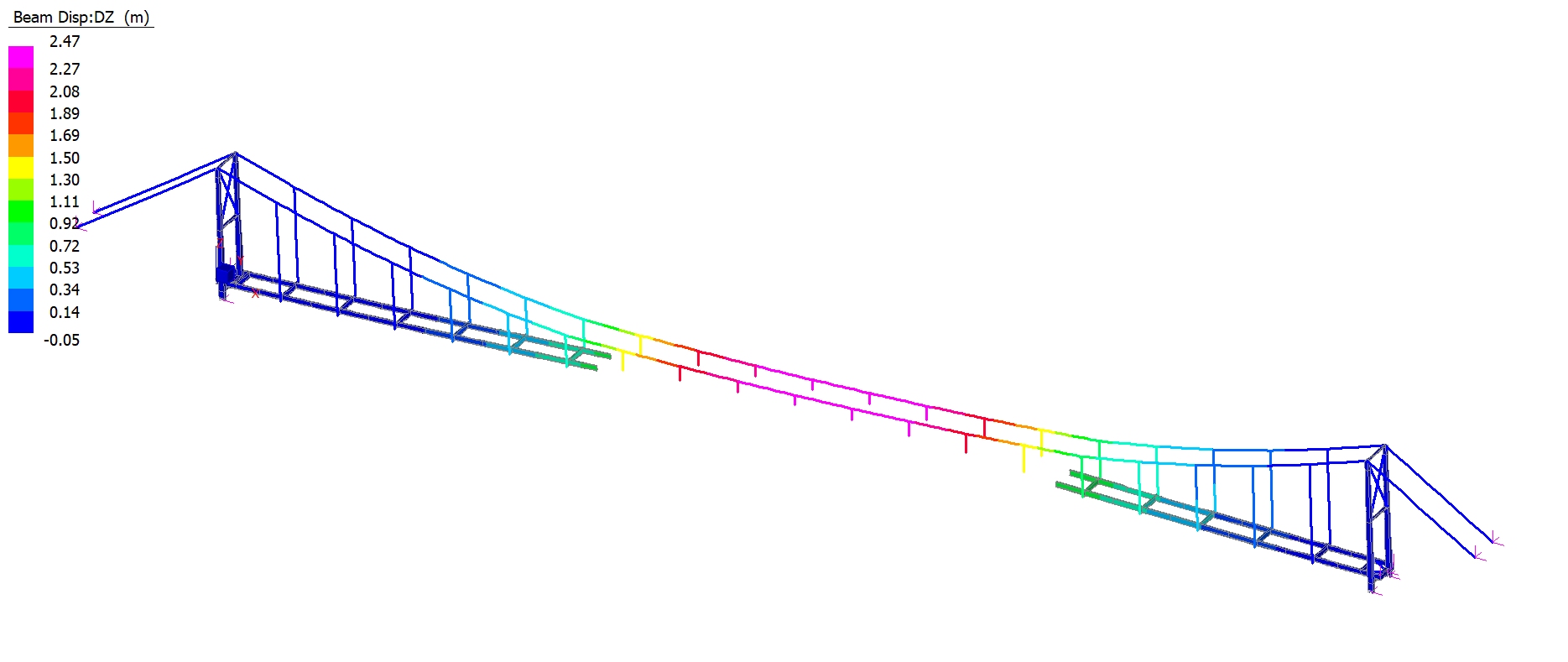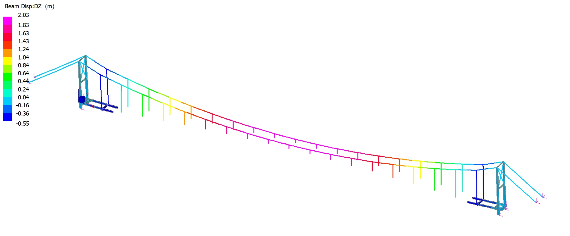 Sorge sospeso a 100 metri di altezza, sopra lo spettacolare orrido creato dal torrente Mallero in Valmalenco (SO), il ponte ciclopedonale che collega le localita' di Mossini e Ponchiera. L'opera commissionata dal Comune di Sondrio e' stata progettata da MAFFEIS ENGINEERING S.p.A., capogruppo del raggruppamento che comprende Studio Moncecchi Associati, Arch. Francesco Venzi e Se.i.co. e realizzata da C.M.M. F.lli Rizzi s.r.l. Durante tutto l'iter progettuale, che il raggruppamento ha seguito dal preliminare all'esecutivo, si sono indagate in modo approfondito tutte le specificita' di una struttura di questo tipo, soggetta alle azioni dinamiche indotte dal vento oltre che alla problematica del comfort della folla in attraversamento. L'architettura strutturale del ponte e' di tipo tensostrutturale, ovvero una passerella sospesa con funi superiori portanti principali e funi stabilizzanti inferiori secondarie. L'opera ha una luce di attraversamento di circa 146 mt ed una larghezza calpestabile di 2.90 mt. La struttura portante e' costituita da un impalcato in struttura metallica (costituito da due travi principali a doppio T ad anima inclinata) e soletta in calcestruzzo. L'impalcato e' connesso alle funi portanti mediante una pendinatura avente un passo di circa 7.20 mt. Al fine di ottenere una struttura stabile anche per le azioni laterali dovute al vento, sono state messe delle funi stabilizzanti disposte secondo una configurazione spaziale, inizialmente in equilibrio sotto le azioni di tensione iniziale dovute ai carichi permanenti. Il sistema di sospensione e' realizzato con funi costituite da fili di acciaio ad alta resistenza zincati a caldo. Sia le funi portanti (agganciate ai piloni alti 16 mt) sia i cavi stabilizzanti sono funi chiuse FLC, mentre le pendinature sono realizzate con funi spiroidali; i cavi portanti principali hanno un diametro di 80-84 mm, gli stabilizzanti 56 mm e le pendinature tra i 16 e i 20 mm. Le funi stabilizzanti sono caratterizzate da curvature nei piani verticali e orizzontali in modo da ottenere una risposta efficace contro le azioni dei carichi gravitazionali e le azioni di sollevamento e trascinamento indotte dal vento. E’ stato realizzato un modello FEM di calcolo Straus7 comprensivo di antenne, impalcato e cavi, non solo per il calcolo degli stati di esercizio, ma anche per la simulazione, tramite stage analysis di tutte le fasi di montaggio del ponte, permettendone la supervisione e il monitoraggio. Il modello e' stato realizzato mediante un approccio parametrico, mediante interfaccia Rhinoceros-Grasshopper resa possibile per mezzo di un codice personalizzato realizzato con l'opzione API (Application Program Interface) di Straus7. Testo, foto e immagine del modello di calcolo per gentile concessione di Maffeis Engineering Spa. |