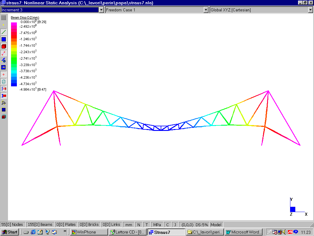 L’output grafico del programma ha consentito di visualizzare con grande efficacia le sollecitazioni e gli spostamenti max nelle varie configurazioni di carico: