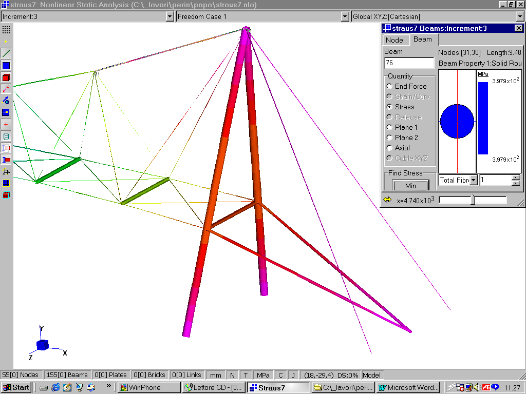 E' stato eseguito un calcolo di verifica della struttura, utlizzando il programma ad elementi finiti STRAUS.