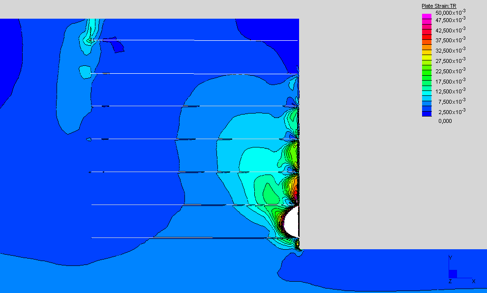 Strain Tresca (Rn = 0.1 - f ’ = 35° - L=5m – fondo bloccato)