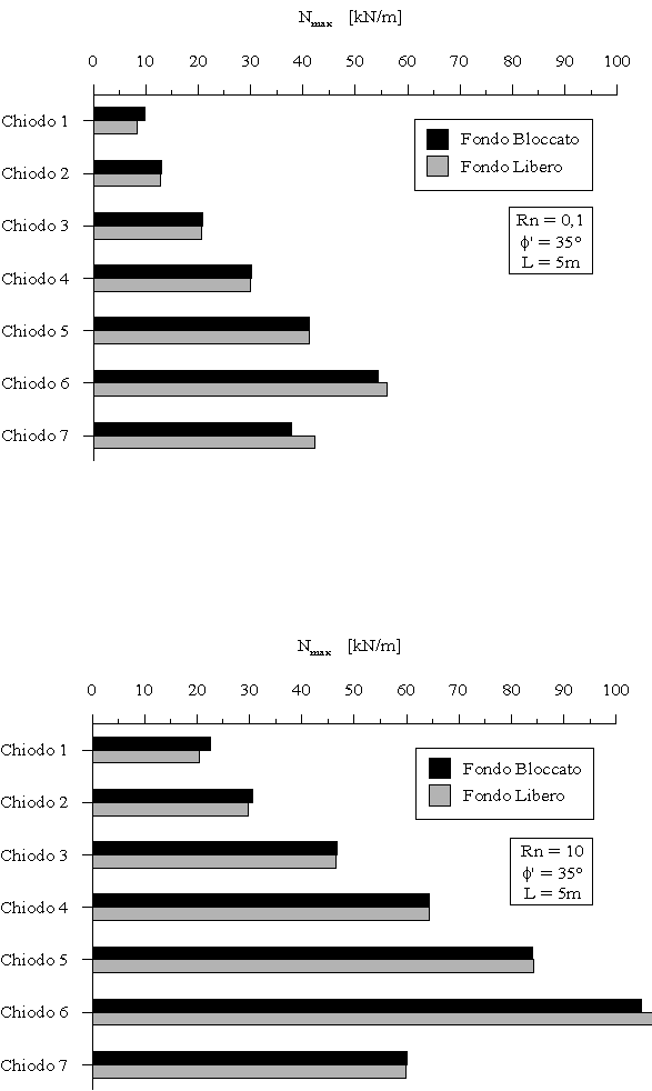 Per l’analisi parametrica dell’interazione terreno struttura si è fatta variare la rigidezza del chiodo di due ordini di grandezza tra Rn = 0.1 e Rn = 10, dove Rn rappresenta la rigidezza relativa del chiodo rispetto alla rigidezza del terreno da esso rinforzato: