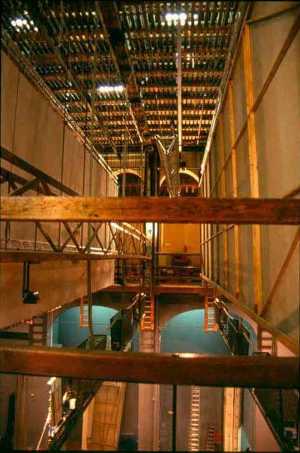 Per effettuare il suddetto rilievo si è potuta utilizzare una passerella in legno appesa tra le travi 5 e 6 realizzata per potere fare la manutenzione agli organi meccanici che permettono la movimentazione del grande lampadario.