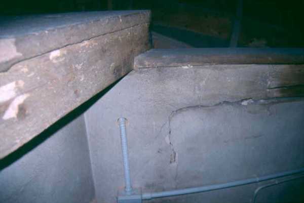 Inoltre il timpano su cui si appoggia l’intera struttura non appare in buone condizioni presentando fessurazioni della muratura di mattoni dovute probabilmente alla spinta orizzontale esercitata dalla volta (fig 5).