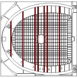 Le travi 4 e 5 non sono portanti, infatti fra di esse corre longitudinalmente una trave reticolare in acciaio alla quale è appeso il lampadario della platea.