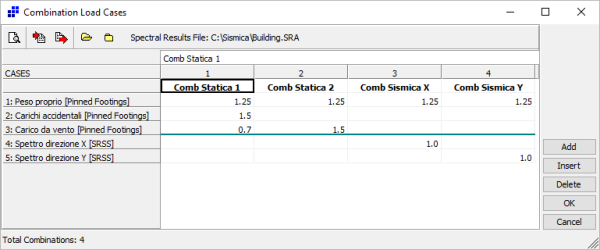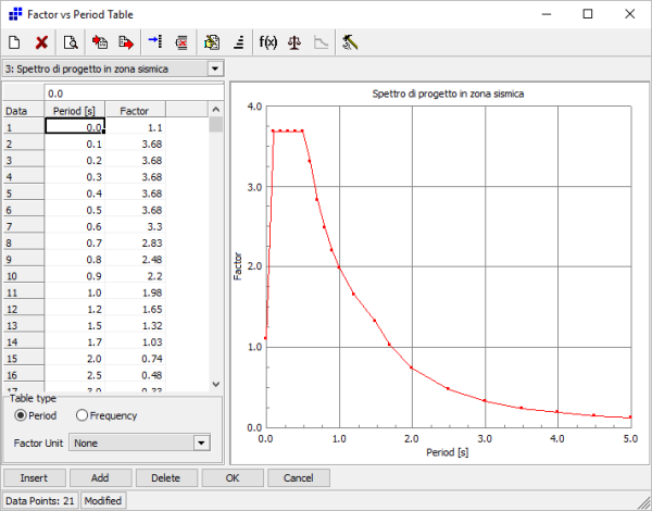 Il menu di controllo del solutore spettrale contiene numerose funzioni utili per lo svolgimento dell’analisi sismica modale, quali: