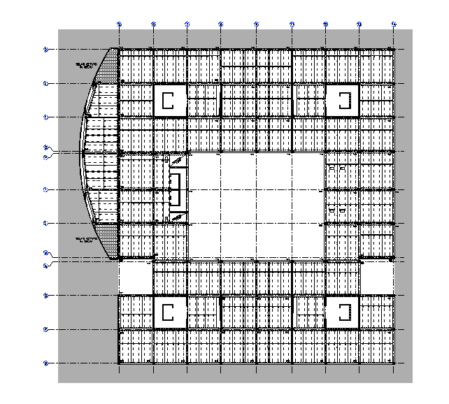 La maglia individuata dai pilastri è approssimativamente quadrata, di lato 8m circa.