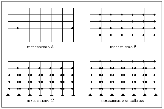Fig. 4 Progressione della formazione di cerniere plastiche