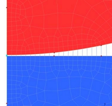 La modellazione è avvenuta sfruttando la simmetria e posizionando gli elementi di contatto nell’interfaccia tra i due corpi (figg. 4 e 5).