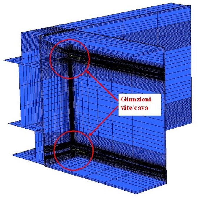Dopo aver eseguito una serie di test di resistenza in laboratorio di tali accoppiamenti, volendo espanderne la valenza anche ad altri casi non testati, si è cercato di riprodurre, tramite il codice di calcolo agli elementi finiti Straus7, il comportamento delle giunzioni stesse, in modo da semplificarne lo studio e ridurre il numero di prove sperimentali future.