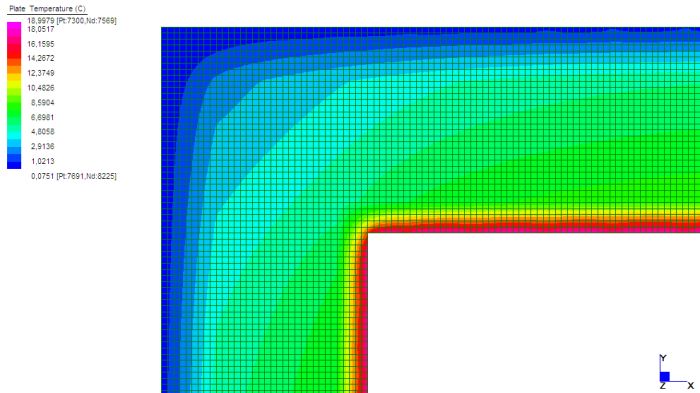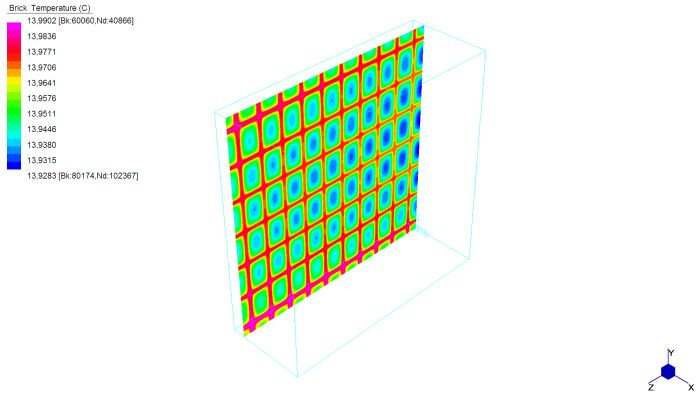 Una delle caratteristiche più importanti da tenere presente nella costruzione di un edificio è quella dell’isolamento termico. Ciò è necessario per fornire a chi vi abiterà il benessere termoigrometrico, ovvero una situazione di comfort del corpo umano, e per garantire una vita di esercizio corretta alle strutture. La situazione di comfort, studiata in relazione agli scambi di calore del corpo umano con il resto dell’ambiente, è determinata da diversi fattori tra cui: la temperatura dell’aria e quella delle superficie che delimitano l’ambiente. A tale scopo gli edifici sono dotati di impianti di riscaldamento per il regime invernale, e di impianti di condizionamento per quello estivo. Si definisce ponte quella parte dell’involucro edilizio dove il flusso termico si sviluppa in 2 o 3 dimensioni; ciò può essere dovuto alla geometria (angoli, etc..) o alle diverse caratteristiche dei materiali che formano l’elemento. In generale in una parete piana idealmente di lunghezza indefinita le superficie isoterme (che descrivono i vari strati di temperatura nella sezione del muro) si dispongono parallele l’una all’altra, e il flusso di calore q risulta essere monodimensionale, e in direzione perpendicolare alle isoterme. Nel caso del ponte termico ciò non avviene: la propagazione del calore va considerata in due o tre dimensioni e ciò porta ad una dispersione termica superiore rispetto al caso monodimensionale; inoltre in tali zone vi è un abbassamento della temperatura superficiale che potrebbe dare luogo a fenomeni di condensa. Il metodo di calcolo agli elementi finiti rappresenta una valida procedura per risolvere le equazioni differenziali governanti il problema, e per fornire risultati accurati. Sono stati studiati alcuni casi notevoli in 2 o 3 dimensioni, con modellazione rispettivamente a plate o brick, principalmente in regime stazionario (non dipendente dal tempo); si riportano nel seguito i grafici dell’andamento della temperatura e del flusso termico.