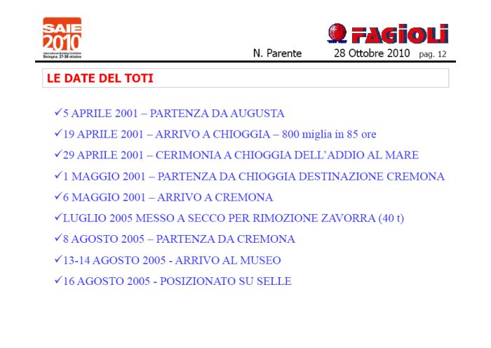 Seguono alcune slides tratte dalla relazione tecnica tenuta al SAIE 2010